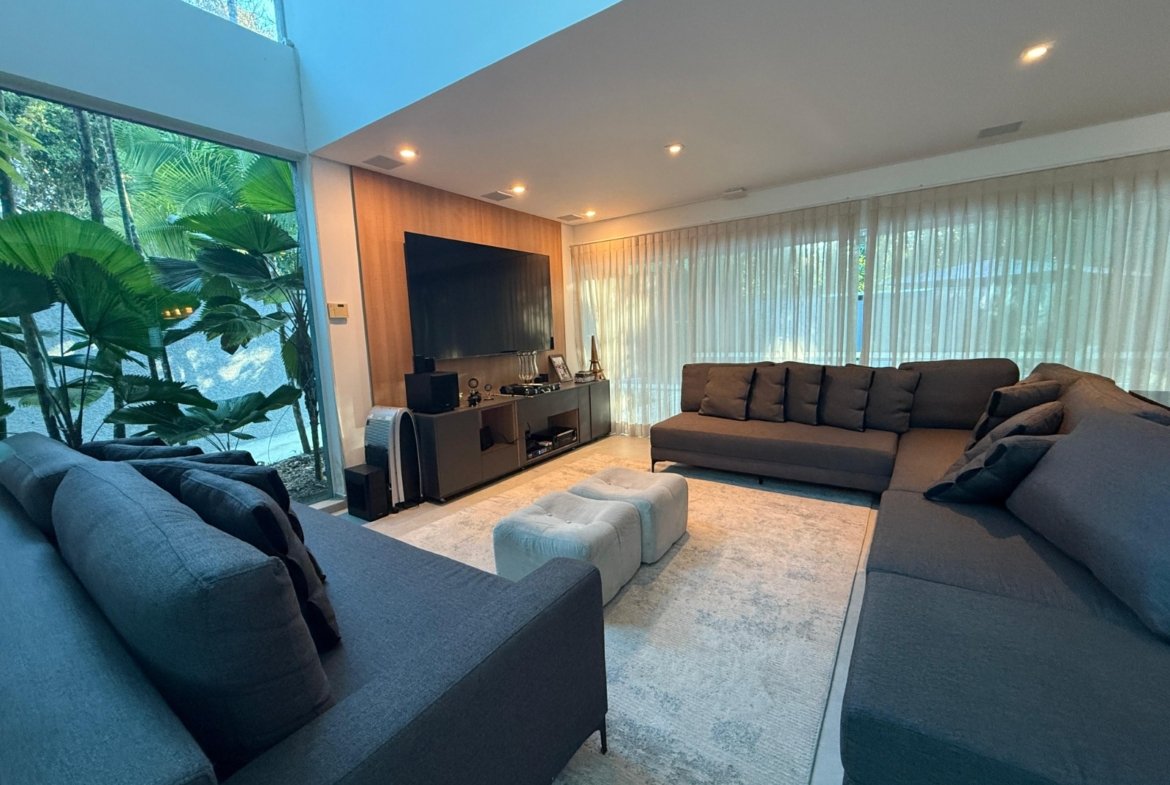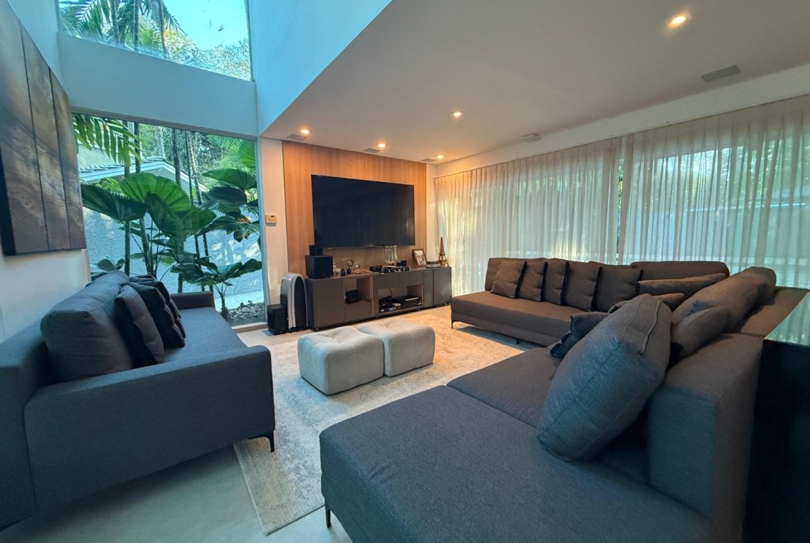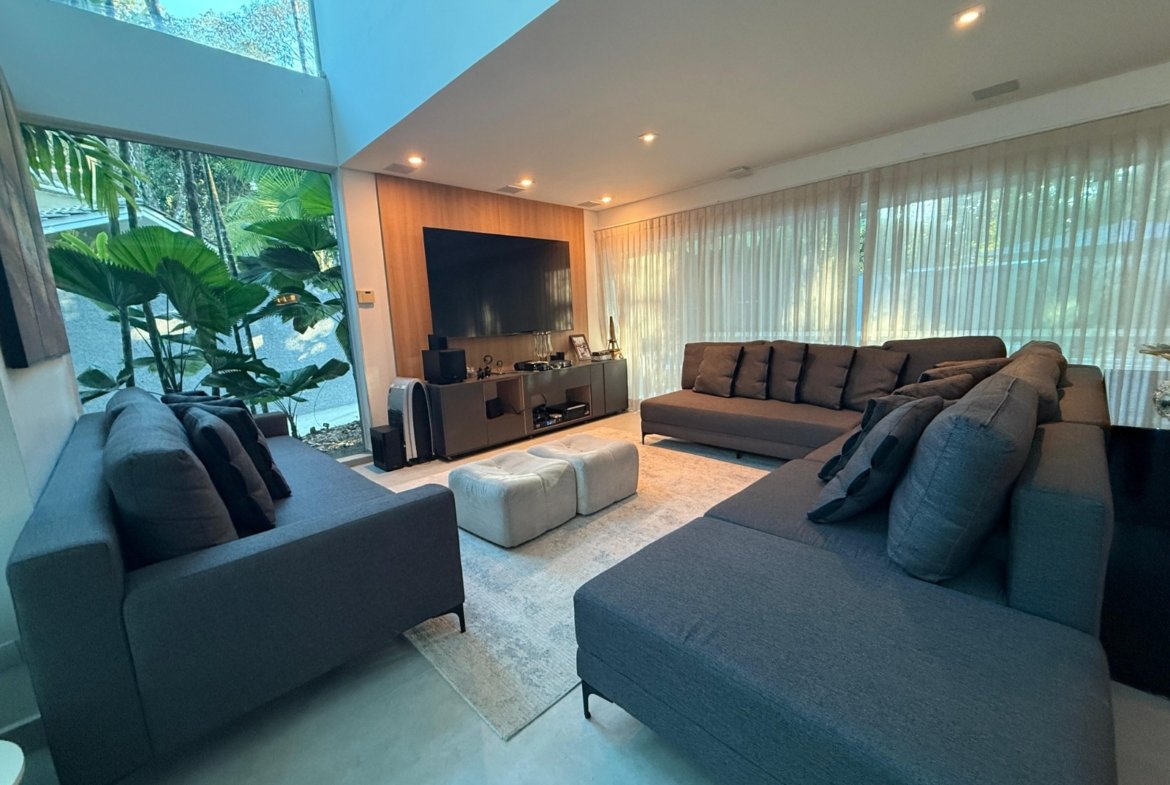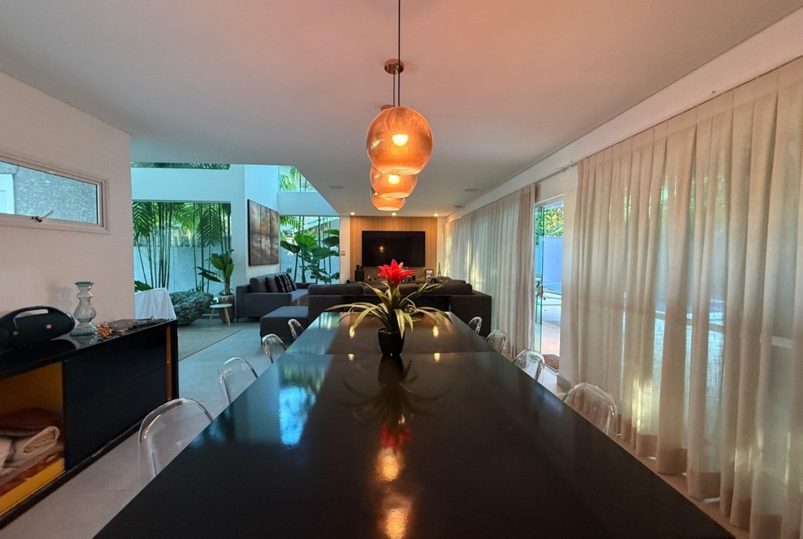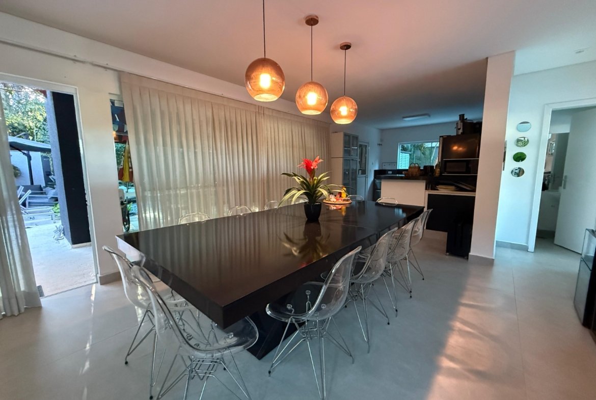 A casa conta com um espaço gourmet completo, ideal para quem gosta de receber, além de um living para 3 ambientes integrado à cozinha americana. Com 4 suítes, a residência garante privacidade e conforto para toda a família.