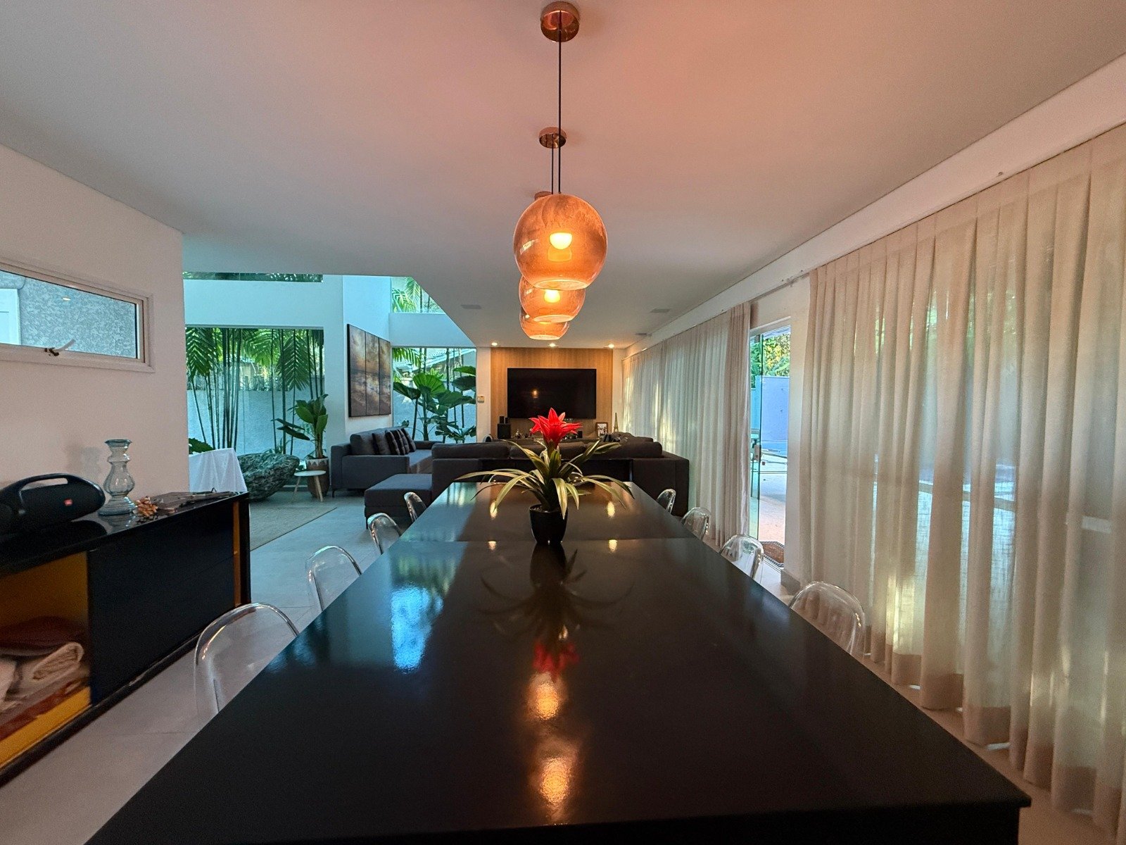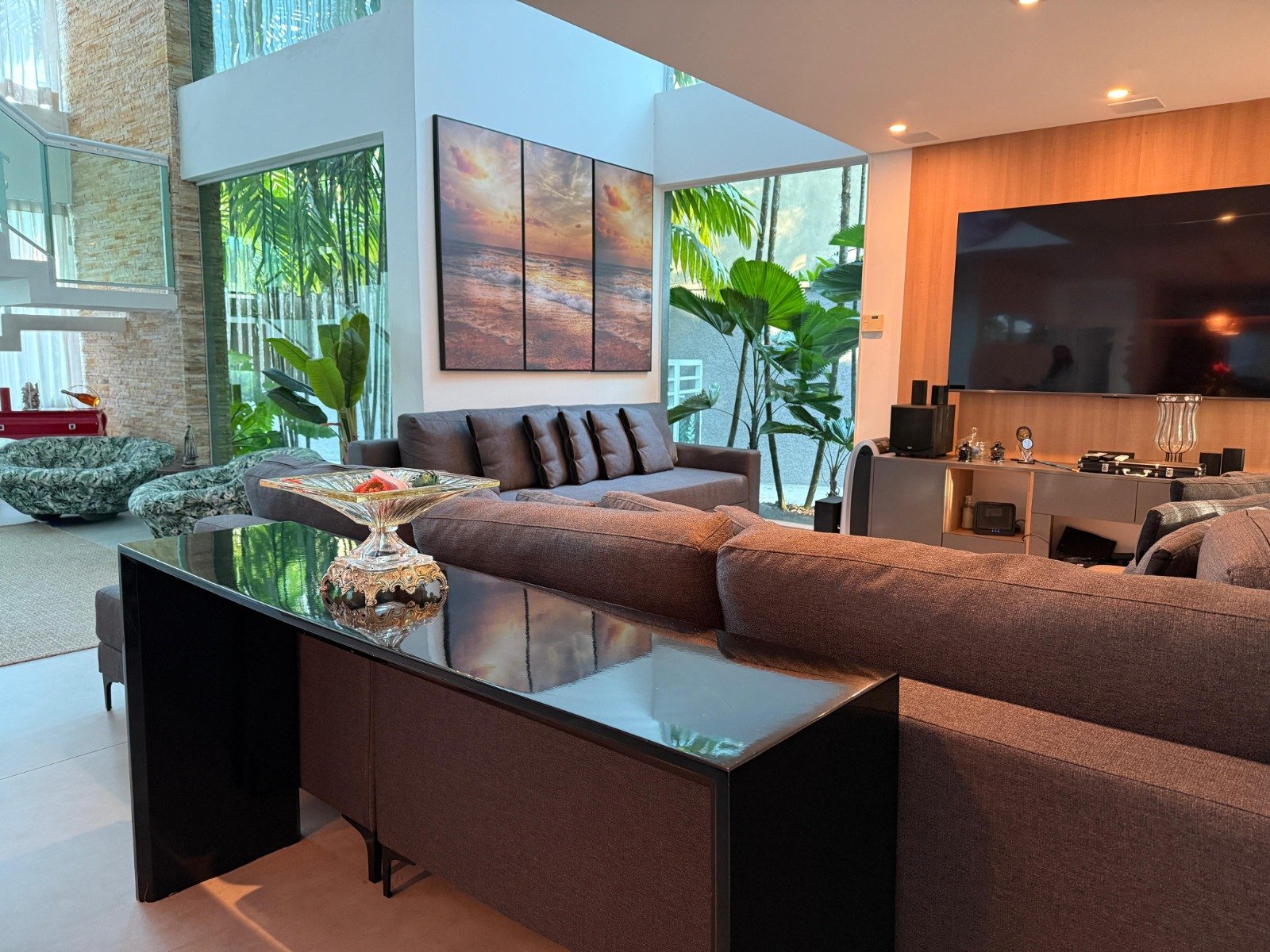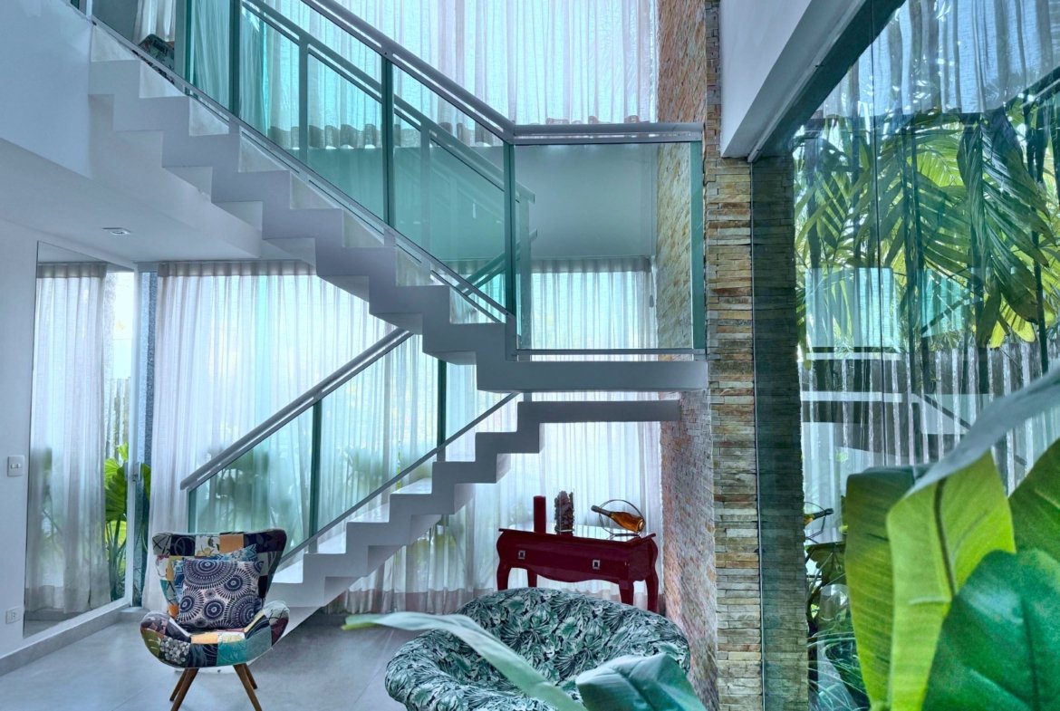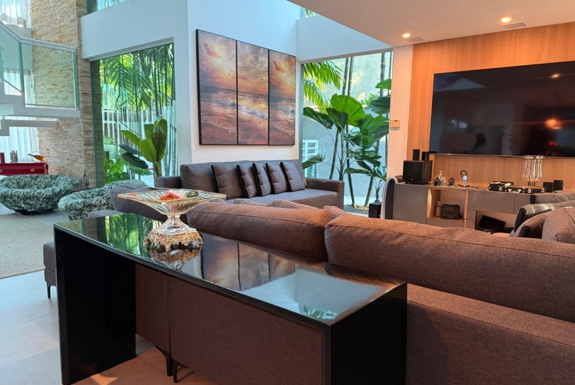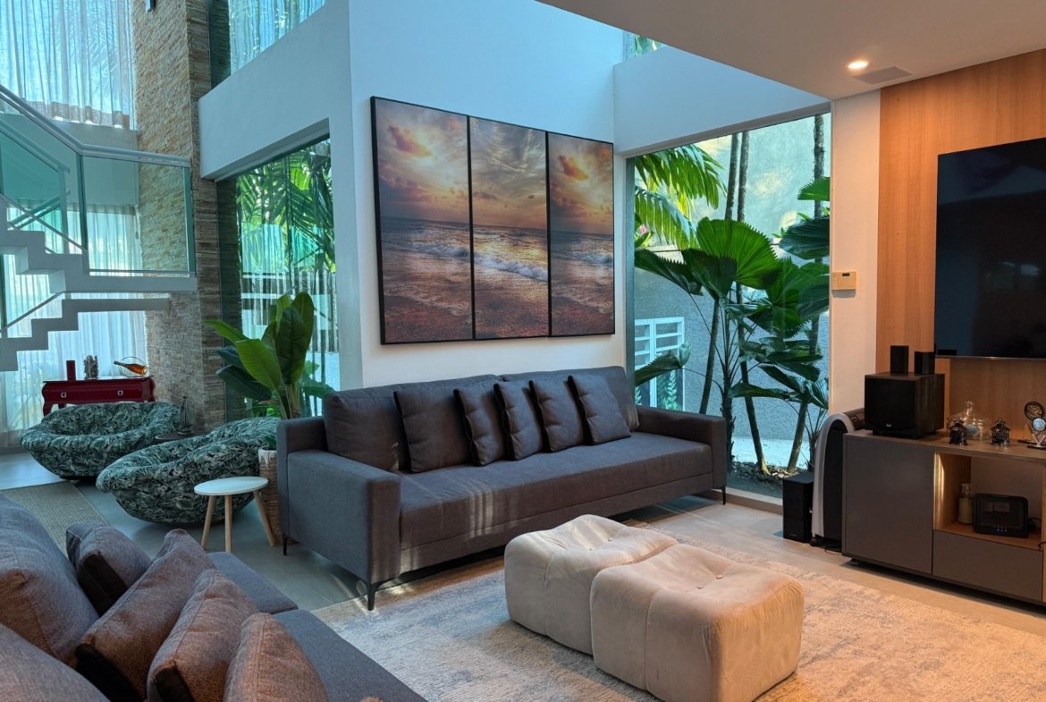 A casa conta com um espaço gourmet completo, ideal para quem gosta de receber, além de um living para 3 ambientes integrado à cozinha americana. Com 4 suítes, a residência garante privacidade e conforto para toda a família.