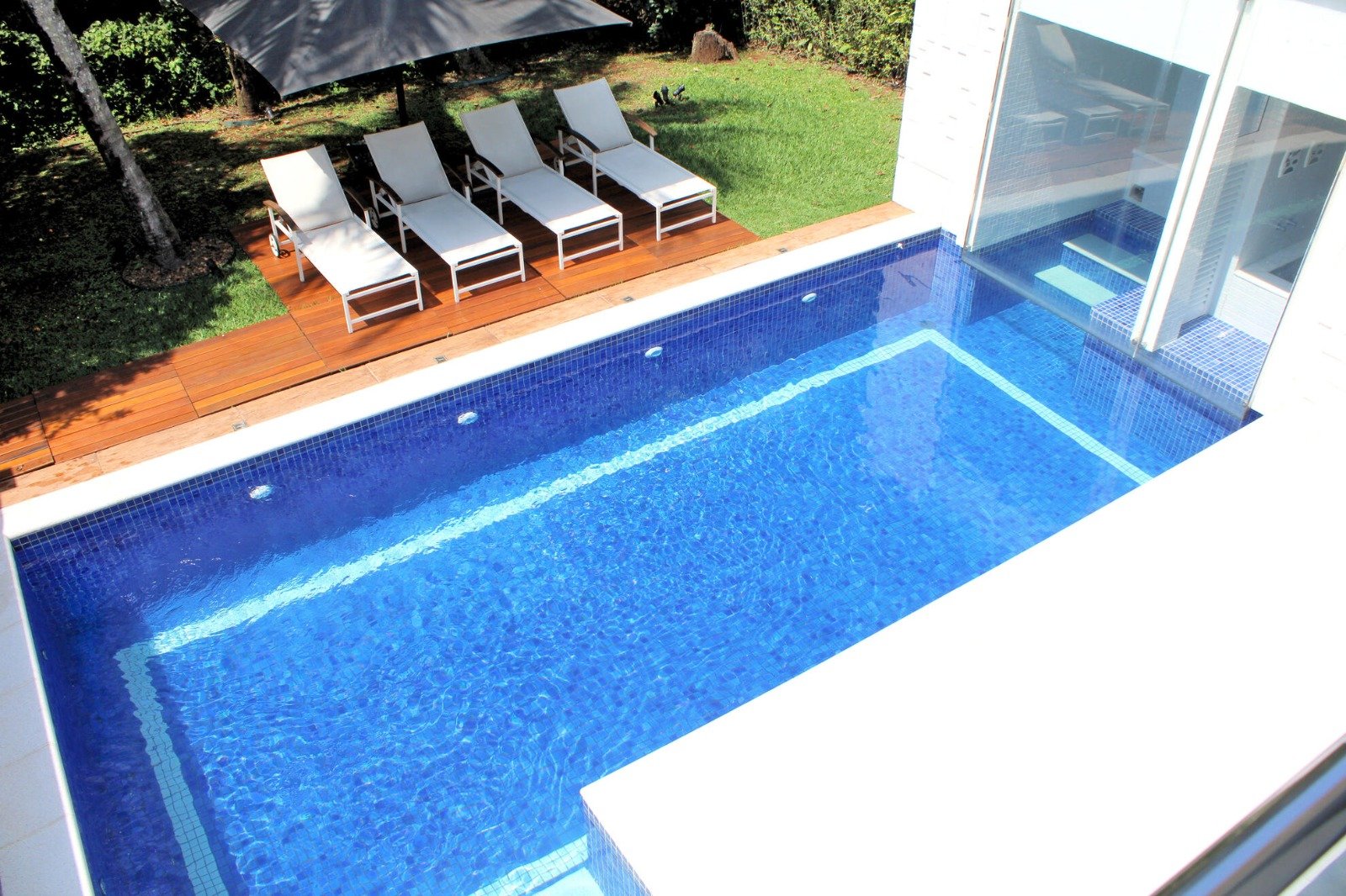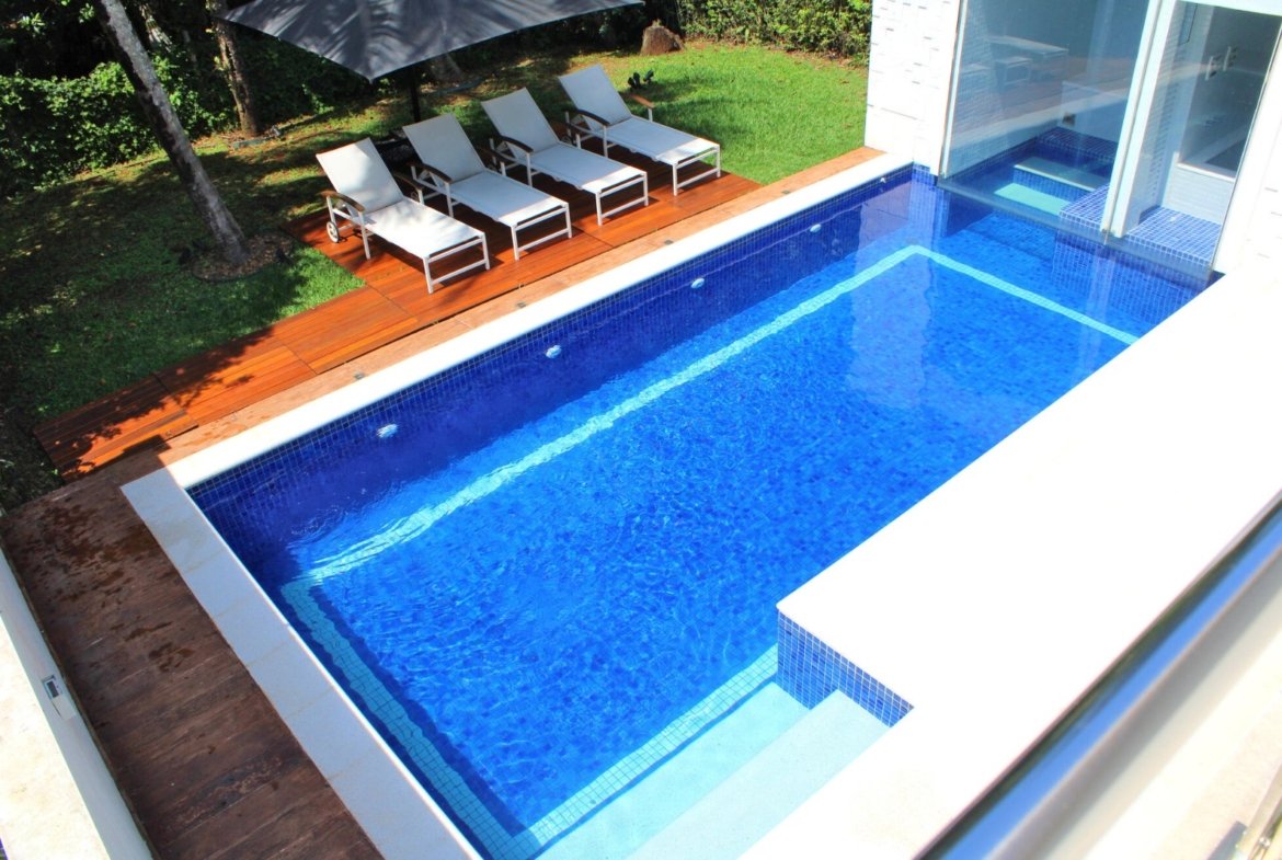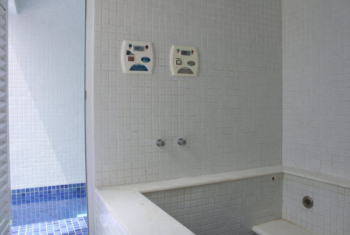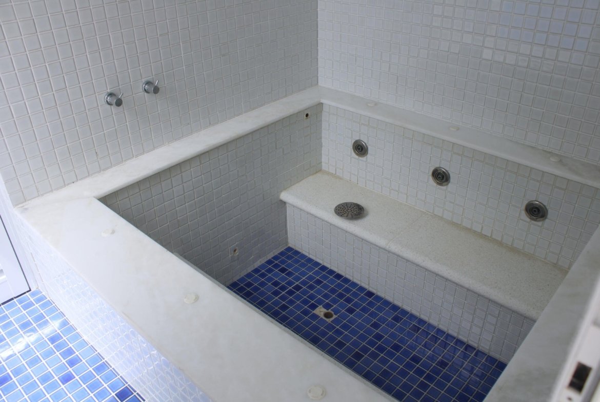 Spa Completo: A piscina se integra perfeitamente à sauna e a uma relaxante hidromassagem.