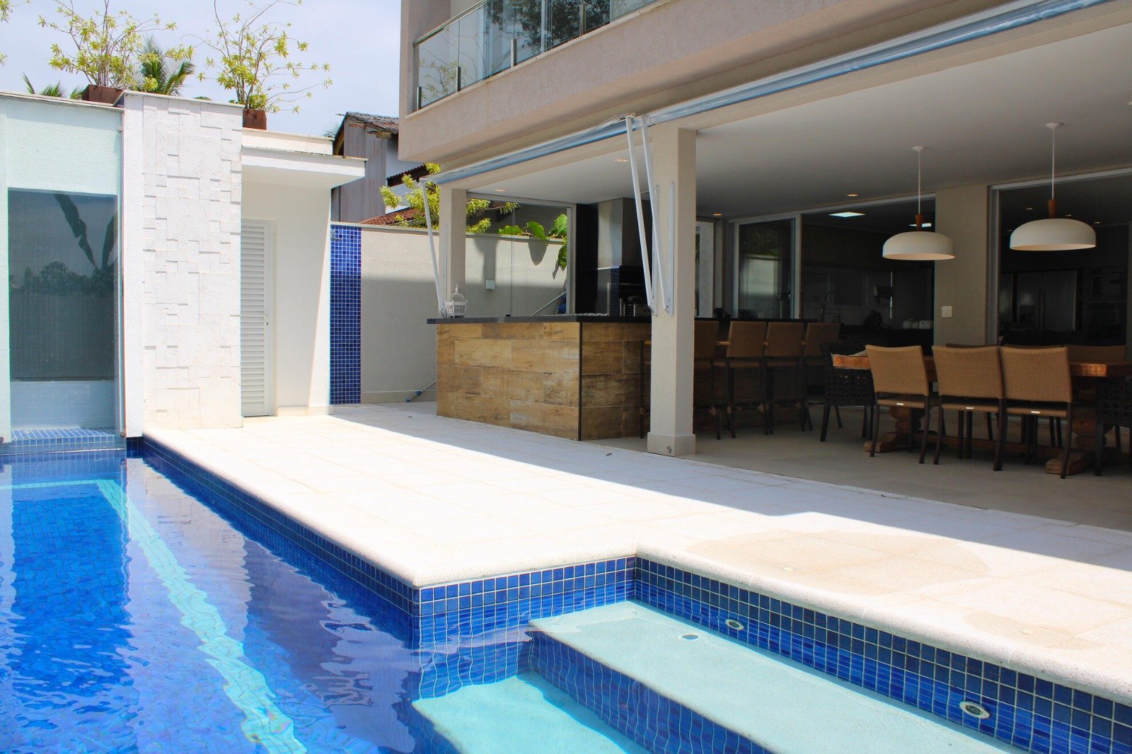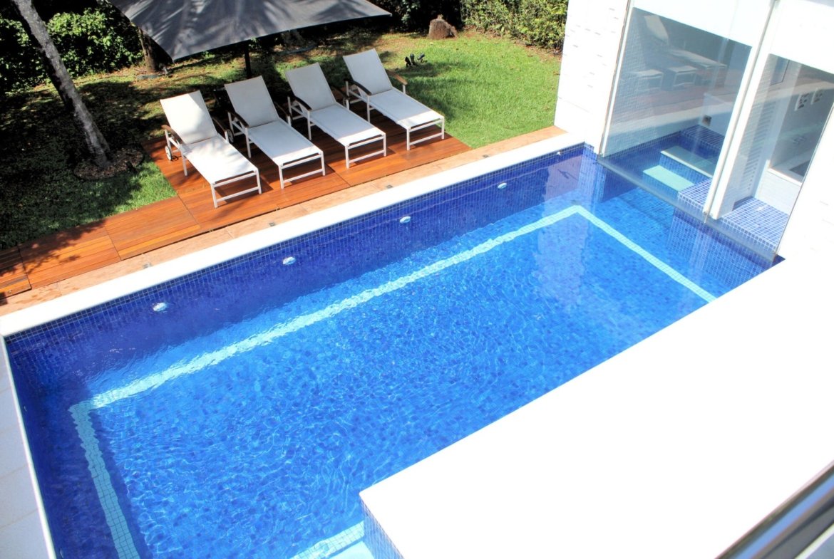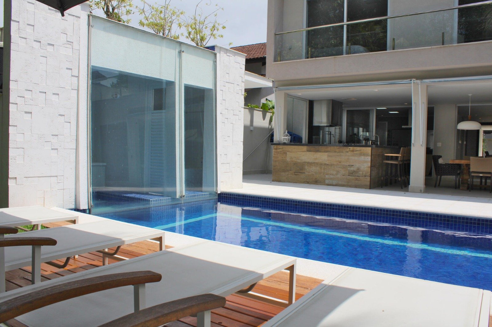Spa Completo: A piscina se integra perfeitamente à sauna e a uma relaxante hidromassagem.