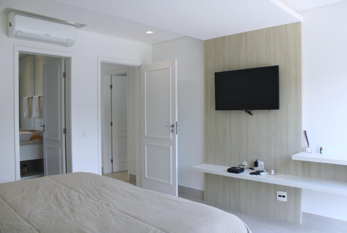 6 Suítes de Luxo: Todas as suítes garantem privacidade total e estão equipadas com ar-condicionado e armários embutidos. Uma suíte está convenientemente localizada no térreo, ideal para maior acessibilidade.