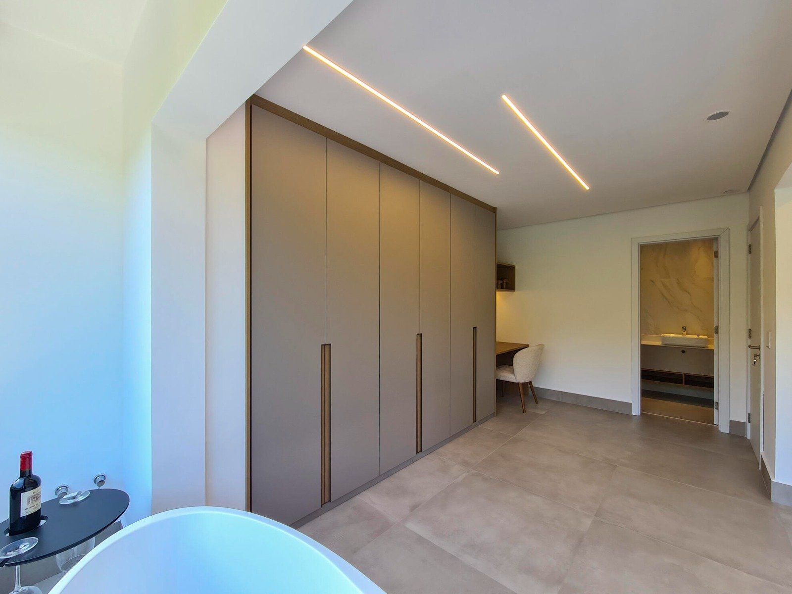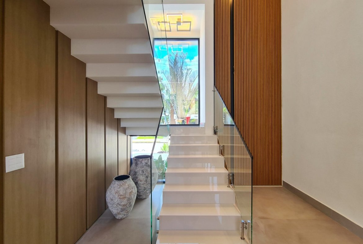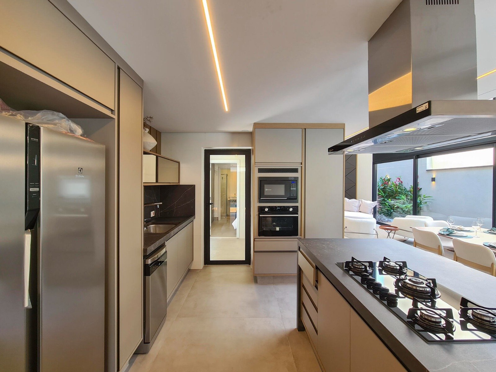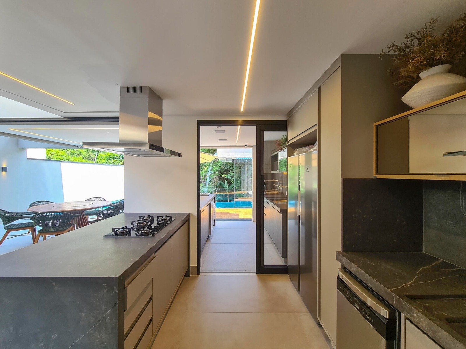 Revestimento Portobello / Metais docol / Chopeira / Cervejeira / Adega / Lavabos (interno/externo) / Ar-condicionado em todos os ambientes / Cachoeira e espelho da água / Aquecimento solar fotovoltaica / Marcenaria Todeschini / Eletrodomésticos / Eletroeletrônicos / Persianas elétricas / Cortina elétrica / Alexia, acionamento inteligente / Bancadas e escada em dekton.
