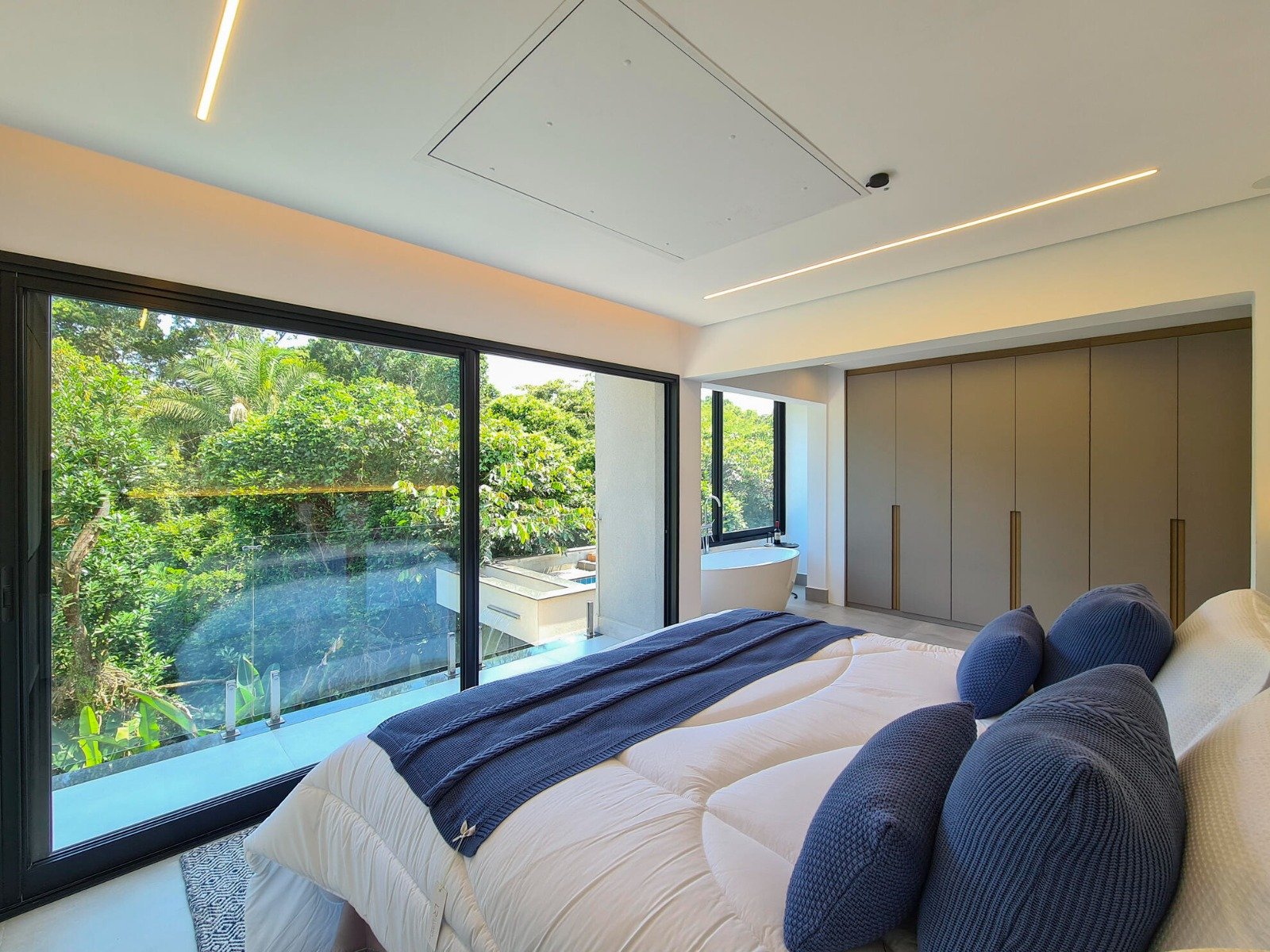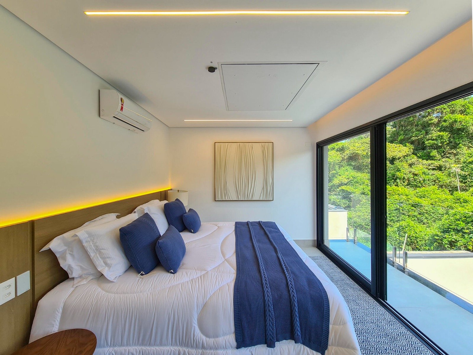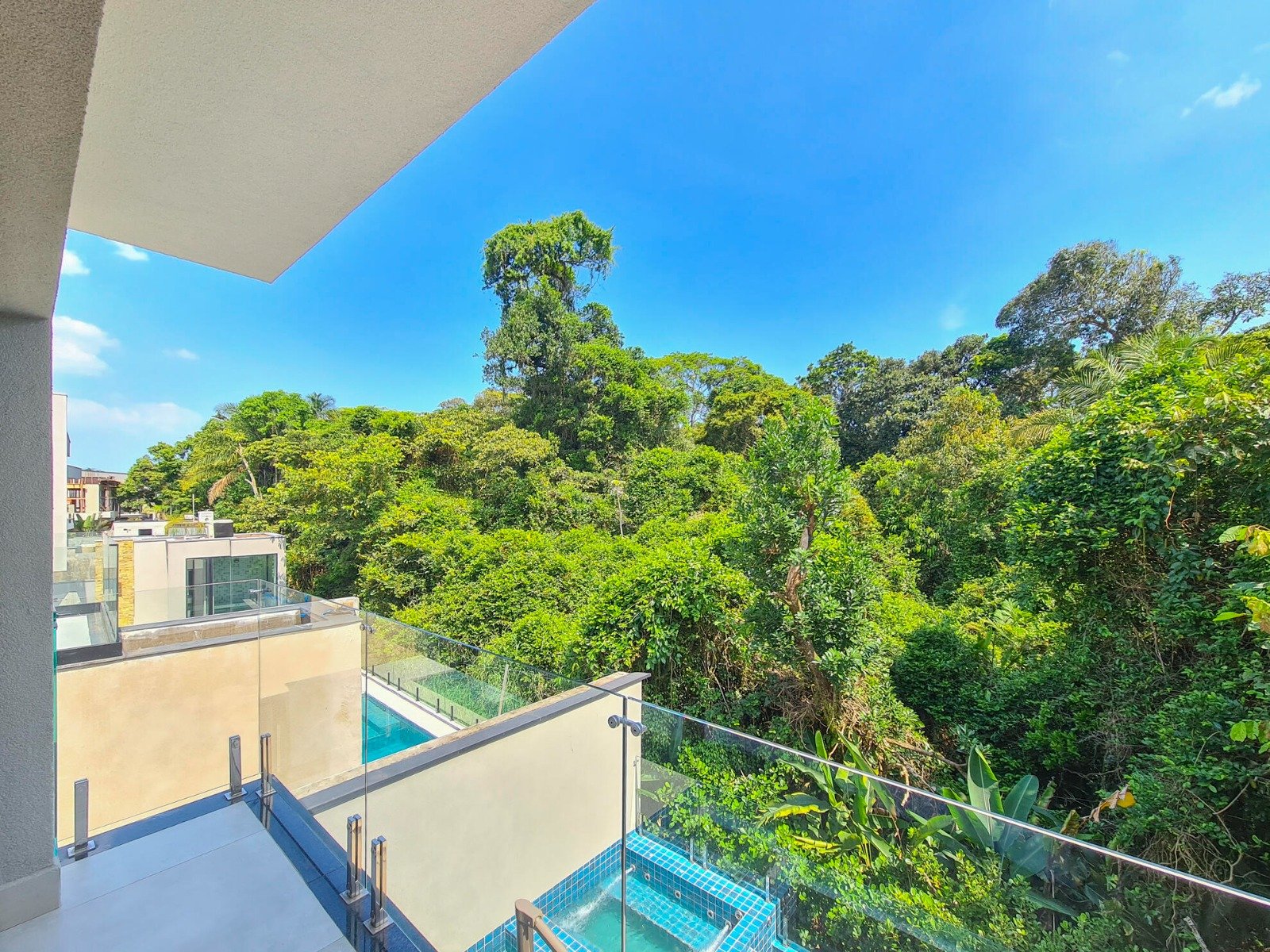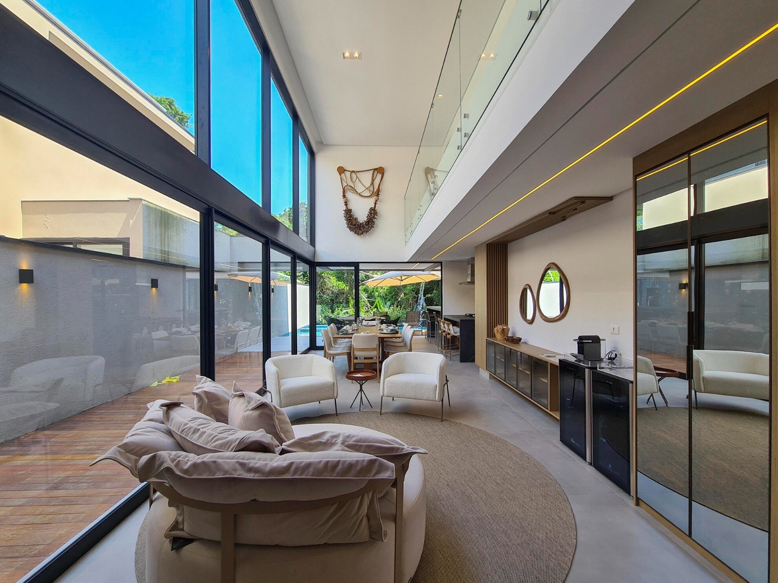 Ao todo são 5 suítes amplas, sendo a principal com terraço e vista para a mata e piscina. Extremamente aconchegante, tudo dentro da residência é especial, desde o living para 3 ambientes, lavabo, cozinha americana até a sua suíte de apoio para funcionários.
